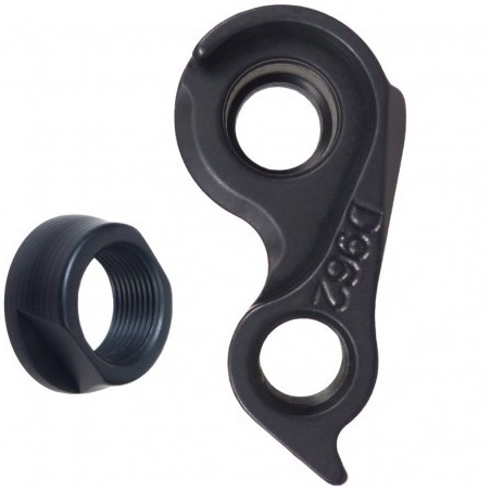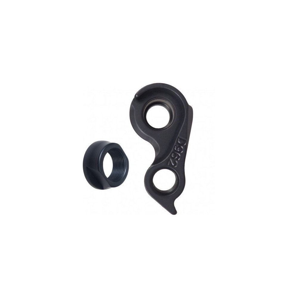 Patte de dérailleur avec écrou de fixation. Compatible axe traversant 12 mm.