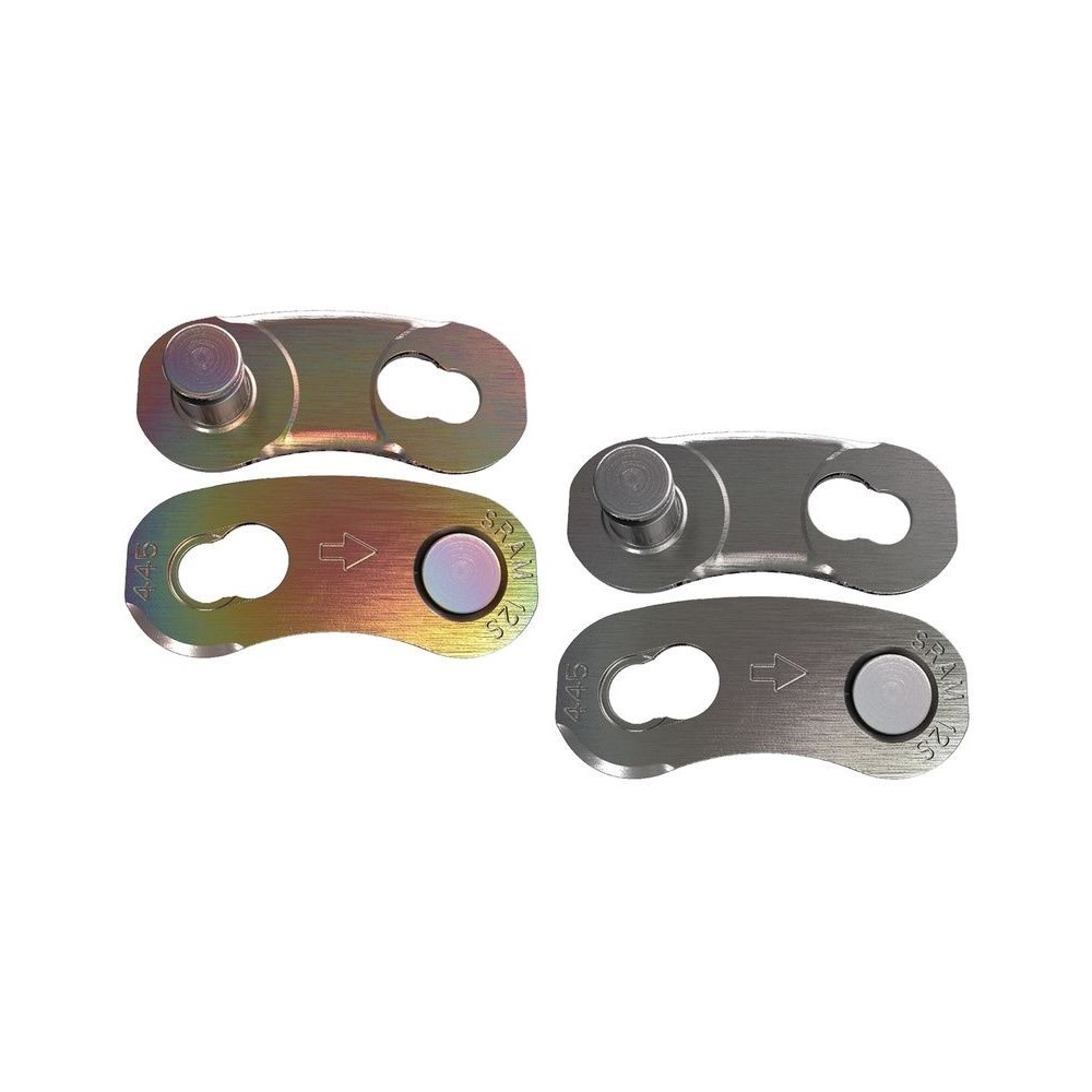 Attache rapide SRAM pour transmission Eagle 12 vitesses, montage type T (Attache Segment). Permet de relier/disjoindre facilement chaîne Eagle, poids réduit et haute fiabilité.