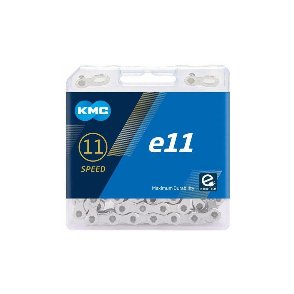 La chaîne KMC e11 est conçue pour VAE et transmissions 11 vitesses. Avec 122 maillons et attache rapide, elle allie robustesse et fluidité.