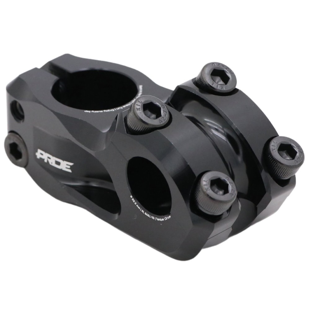 Pride Cayman 50 mm pour cintre Ø22,2. Potence BMX rigide et fiable, idéale pour la race et les sprints.