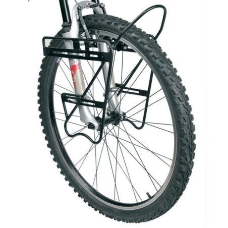Porte-bagages avant robuste en aluminium, compatible avec la majorité des vélos de randonnée et gravel.